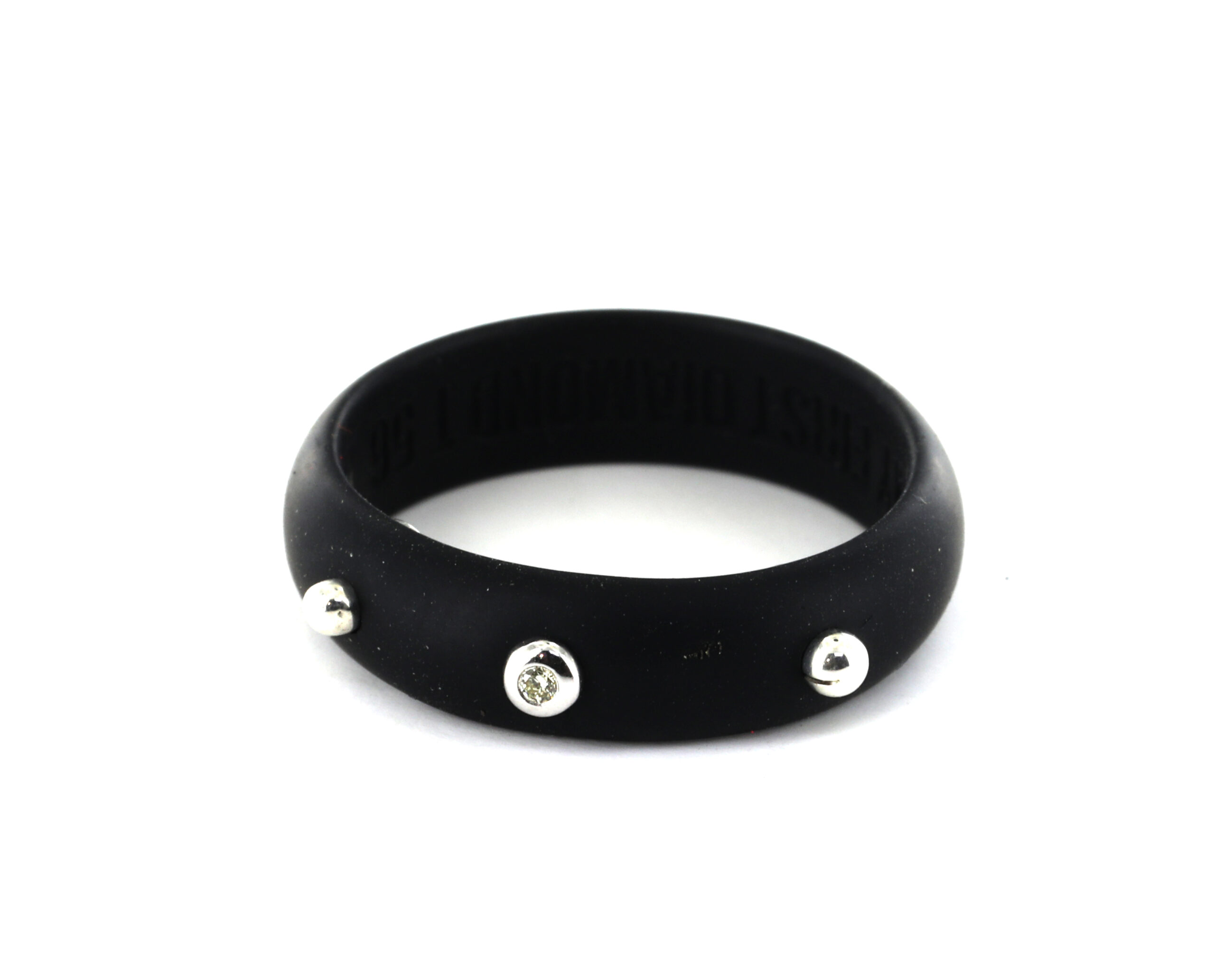 • Bague silicone taille allant du 52 au 56 serti d’un diamant 0,03 carats de qualité HSI 3.